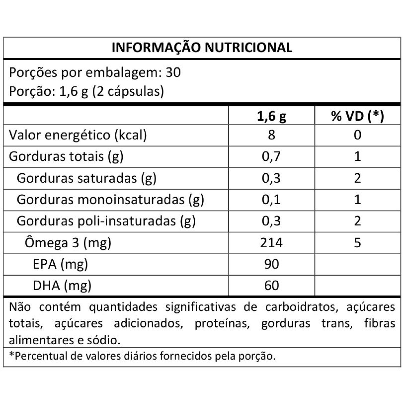 - Quantidades de EPA/DHA e demais nutrientes: consultar a Tabela Nutricional do rótulo do lote.